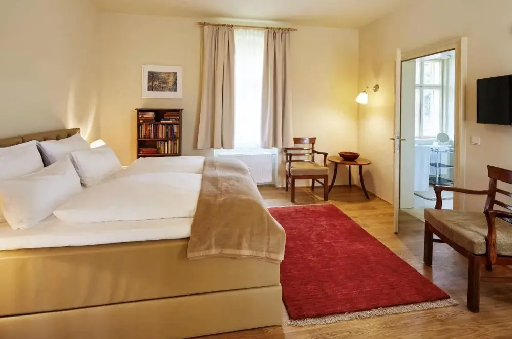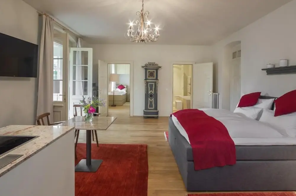 Die Villa Tranquillini auf Gut Guntrams liegt idyllisch in der Gemeinde Schwarzau am Steinfelde, genau an der Adresse Guntrams 11, 2625 Österreich. Die Unterkunft besticht durch ihre gelungene Verbindung von historischem Charme und modernem Komfort, was Gäste bereits in zahlreichen Bewertungen lobend hervorheben. Besonders erwähnenswert sind die authentische Atmosphäre sowie die sorgfältige Auswahl regionaler Materialien bei der Gestaltung des Geländes – ein Merkmal, das den Ort zu einem besonderen Erlebnis macht. Neben dem Wohlgefühl durch die Umgebung überzeugt vor allem das hausinterne Angebot: Ein reichhaltiges Frühstück mit frischen Produkten aus eigenem Anbau steht täglich zur Verfügung und umfasst unter anderem hochwertige Gemüsevariationen. Auch wer Wert auf lokale Spezialitäten legt, kommt voll auf seine Kosten, da viele Zutaten direkt vom Hof stammen und so für einen besonders intensiven Geschmack sorgen. Für Entspannung oder sportliche Aktivitäten bietet sich die Nähe zu verschiedenen Freizeiteinrichtungen an: In nur 1,6 Kilometern befindet sich etwa die traditionelle Gasthauskultur der Steinfeldstube, während Tennisbegeisterte innerhalb weniger Minuten zum nahegelegenen Platz gelangen können. Wer lieber Natur pur erleben möchte, findet im umliegenden Gebiet weitere Attraktionen wie den Sessellift Kampstein (etwa 18 Kilometer entfernt) oder den Stadtpark (9 Kilometer). Kulturinteressierte profitieren ebenfalls von der Lage: Schloss Frohsdorf ist nur sieben Kilometer entfernt und lädt zu historischen Spaziergängen ein, während Kunstliebhaber die handwerklich gestaltete Zinnfigurenwelt in Katzelsdorf (rund zehn Kilometer Luftlinie) besuchen können. Praktischer Nutzen ergibt sich zudem durch kostenlosen Parkraum vor Ort sowie Zugang zu freiem WLAN im gesamten Gebäude. Ideal für alle, die Ruhe suchen und gleichzeitig regionale Vielfalt schätzen.
